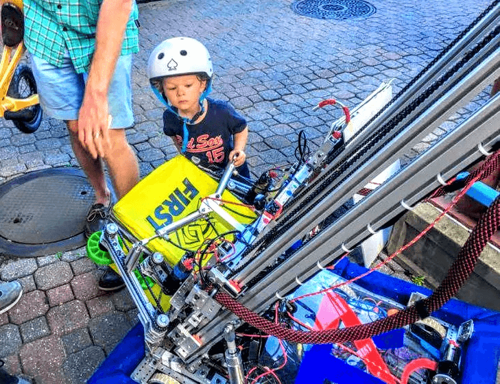 Hosted at Pat Miller Neighborhood square in Alexandria’s Del Ray, First Thursday is a fun neighborhood get together aimed primarily at elementary school-aged children. We had a blast demonstrating our robot, and inviting attendees to drive it! Our KEVA planks activity was a hit, and we had a ton of fun getting to know our community in a more relaxed setting.